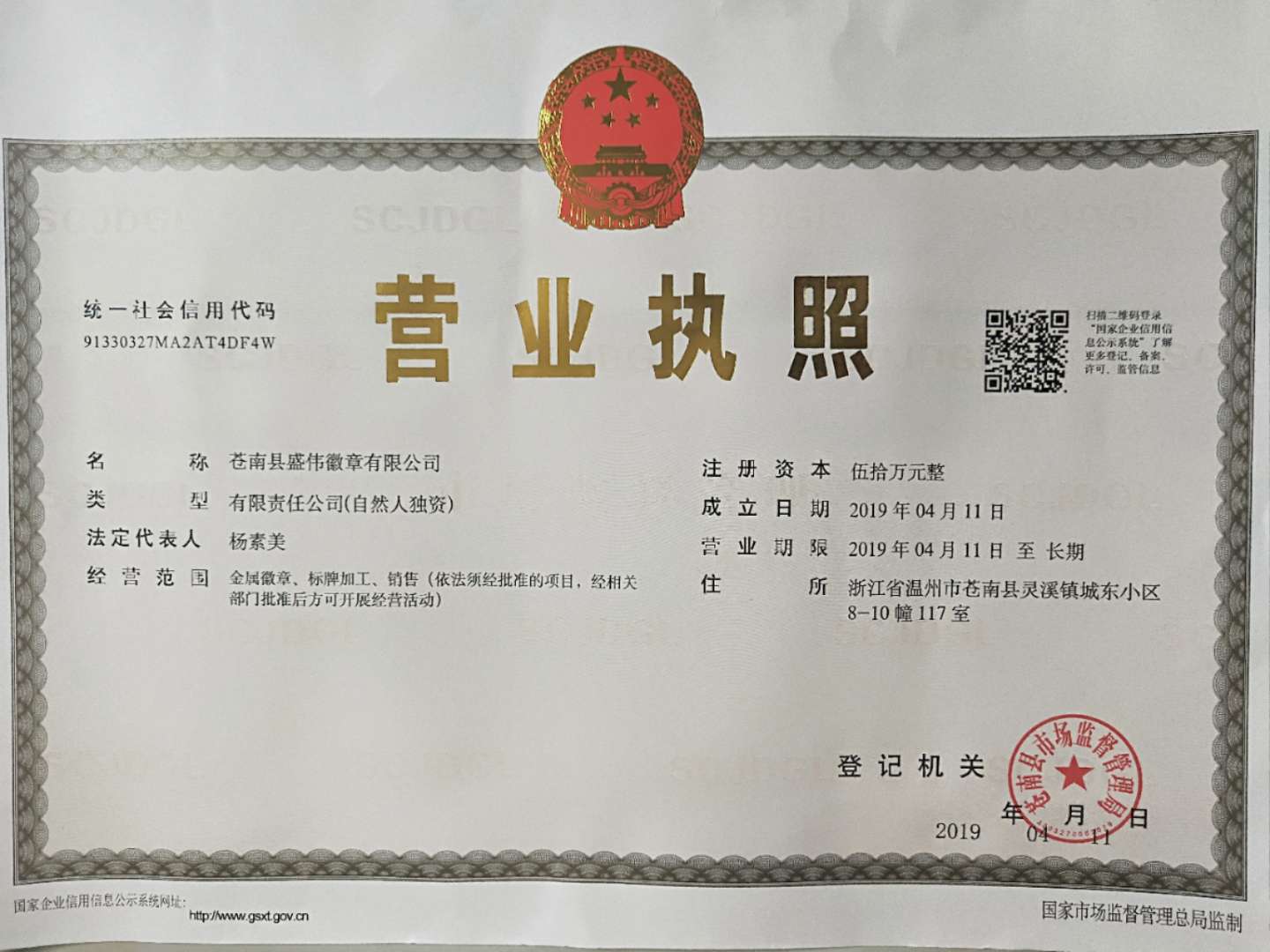 蒼南縣盛偉徽章有限公司成立于2019年,是一家專注于警徽產品設計、、銷售和產品維護的徽章廠家。多年來,我們一直嚴格要求自己,以優(yōu)良產品和誠信為本的理念經營,不斷推動企業的發(fā)展壯大。我們注重人才培養,不斷引進先進的經營理念和管理模式,以滿足企業長期發(fā)展和擴大的需求。